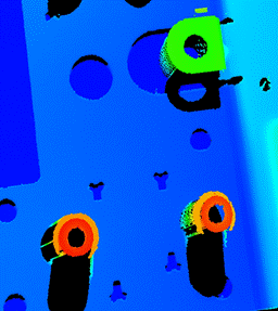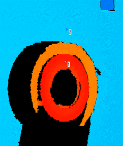 对产品进行3D成像,获得点云,并在KZVision视觉处理软件中对点云数据进行处理,在底面选一个点,在螺柱上选一个点,测量高度差,如下图所示: