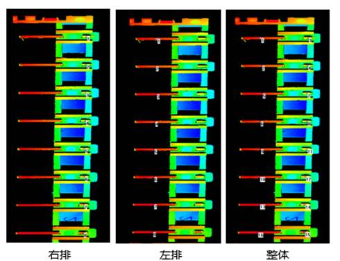 测量方法:将产品平稳固定在运动平台上,在左右两边各选一排8个点,测量平面度;再选整体一共16个点,测量平面度;